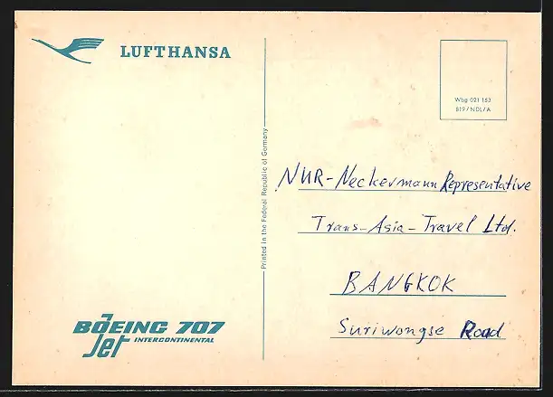 AK Flugzeug Boeing 707 Jet Intercontinental der Lufthansa
