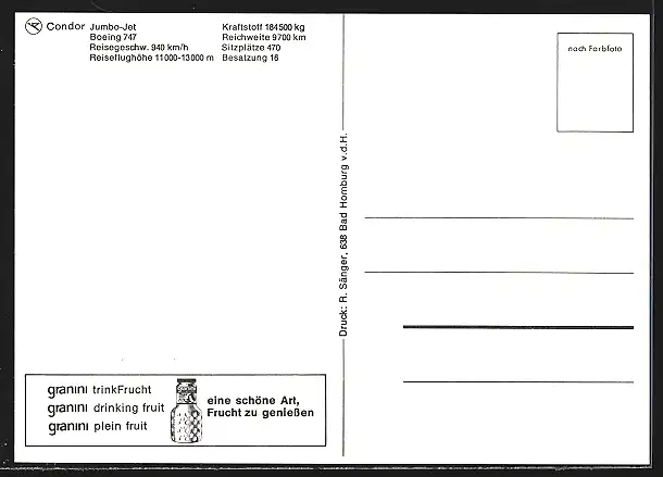 AK Flugzeug Boeing 747 d. Condor im Flug