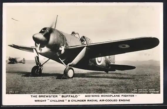AK Flugzeug The Brewster Buffalo I., British Single-Seat Fighter, R. A. F. and Fleet Air Arm on the ground