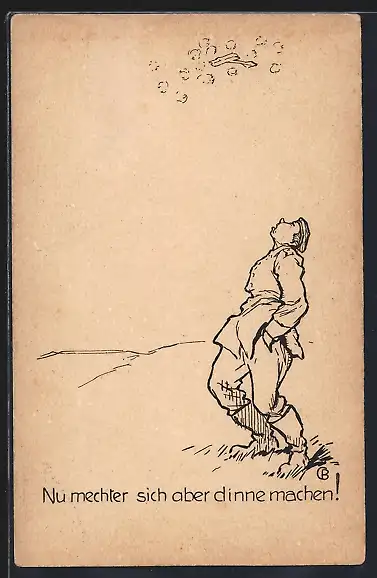 AK Flugzeug im Flak-Feuer, Soldat beobachtet Flugzeug am Himmel