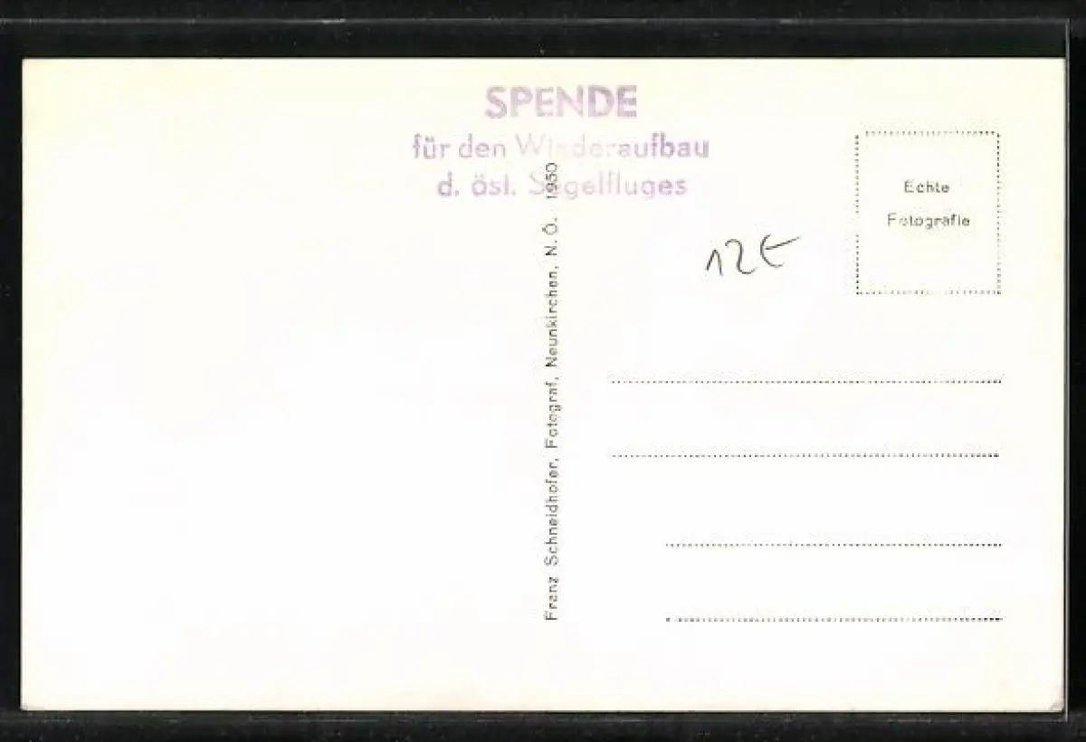 AK Fördert den heimischen Segelflug!, Segelflugzeug im verschneiten Gebirge