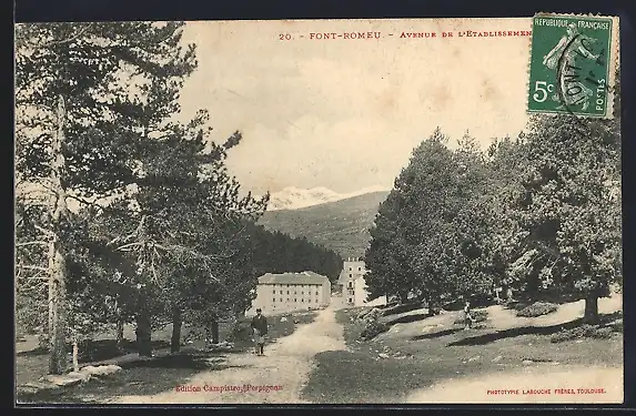 AK Font-Romeu, Avenue de l`Établissement avec vue sur les montagnes et les arbres environnants