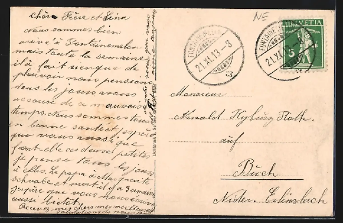 gelaufen 1913, Eckknick unten li., Abriebspur oben re., guter Zustand