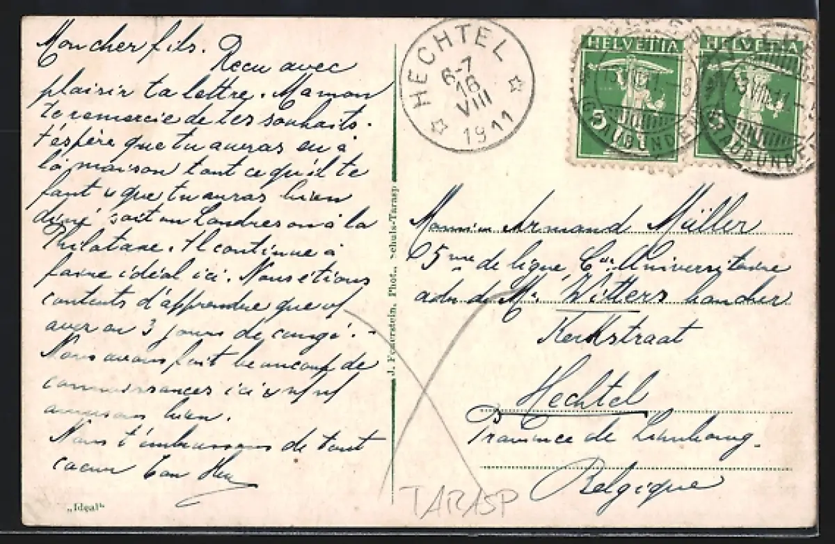 gelaufen 1911, Eckknicke li. oben, guter Zustand