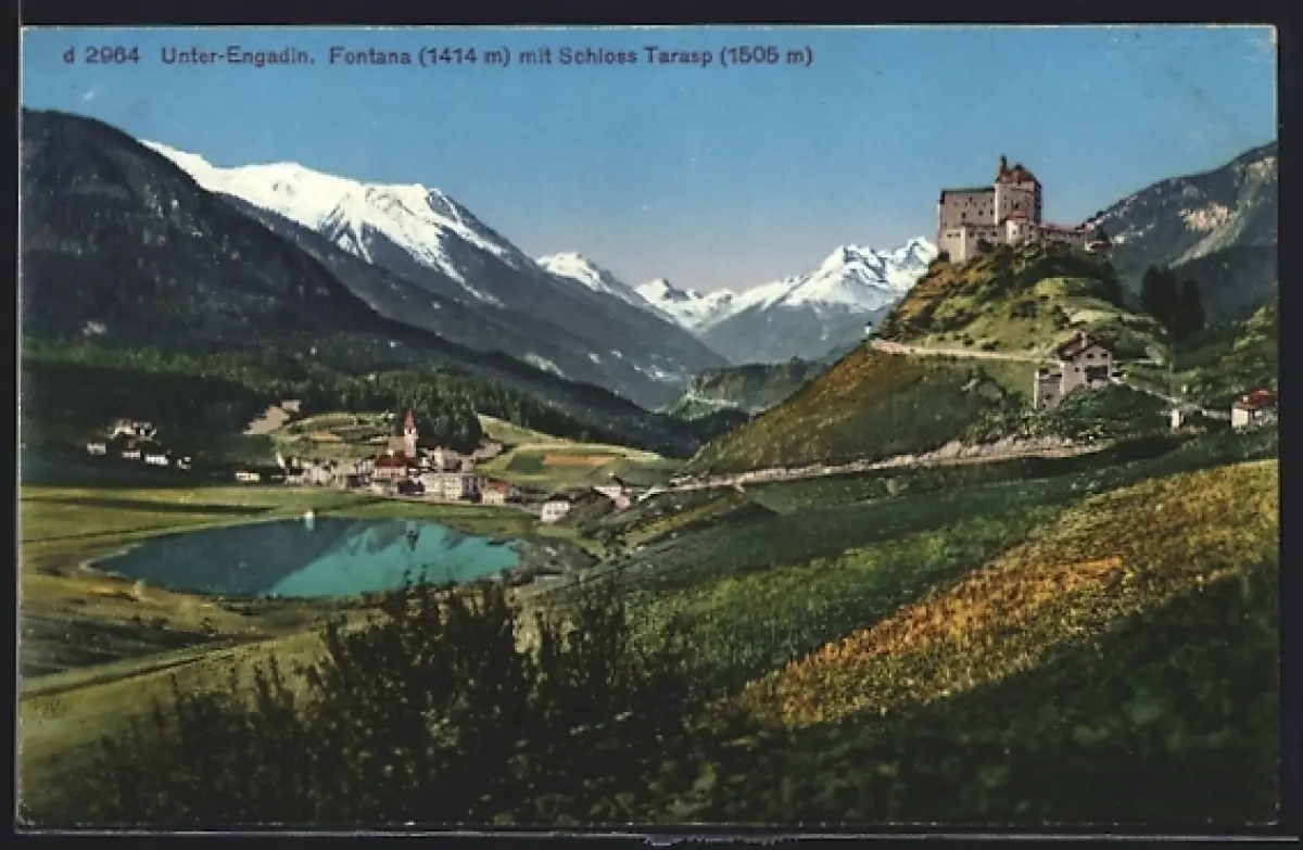 AK Fontana /Unter-Engadin, Ortsansicht mit Schloss Tarasp