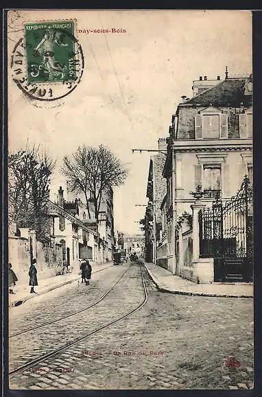 AK Fontenay-sous-Bois, La Rue du Parc avec rails de tramway et passants