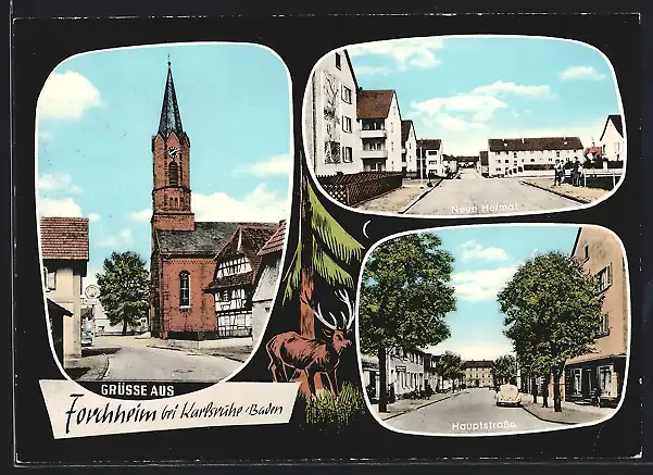 AK Forchheim /Karlsruhe, Neue Heimat, Hauptstrasse, Kirchenpartie