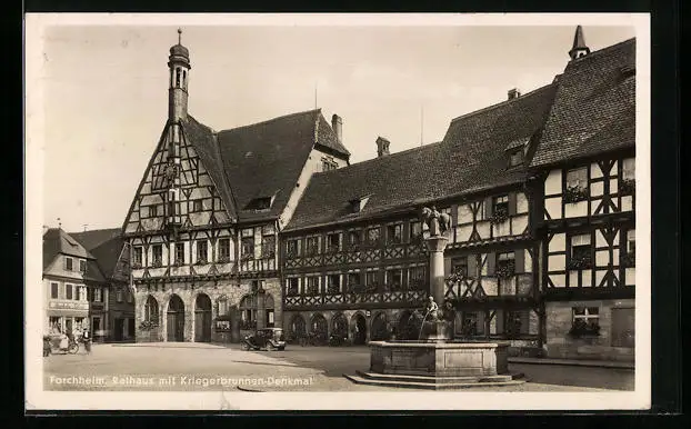 AK Forchheim, Rathaus mit Kriegerbrunnen-Denkmal
