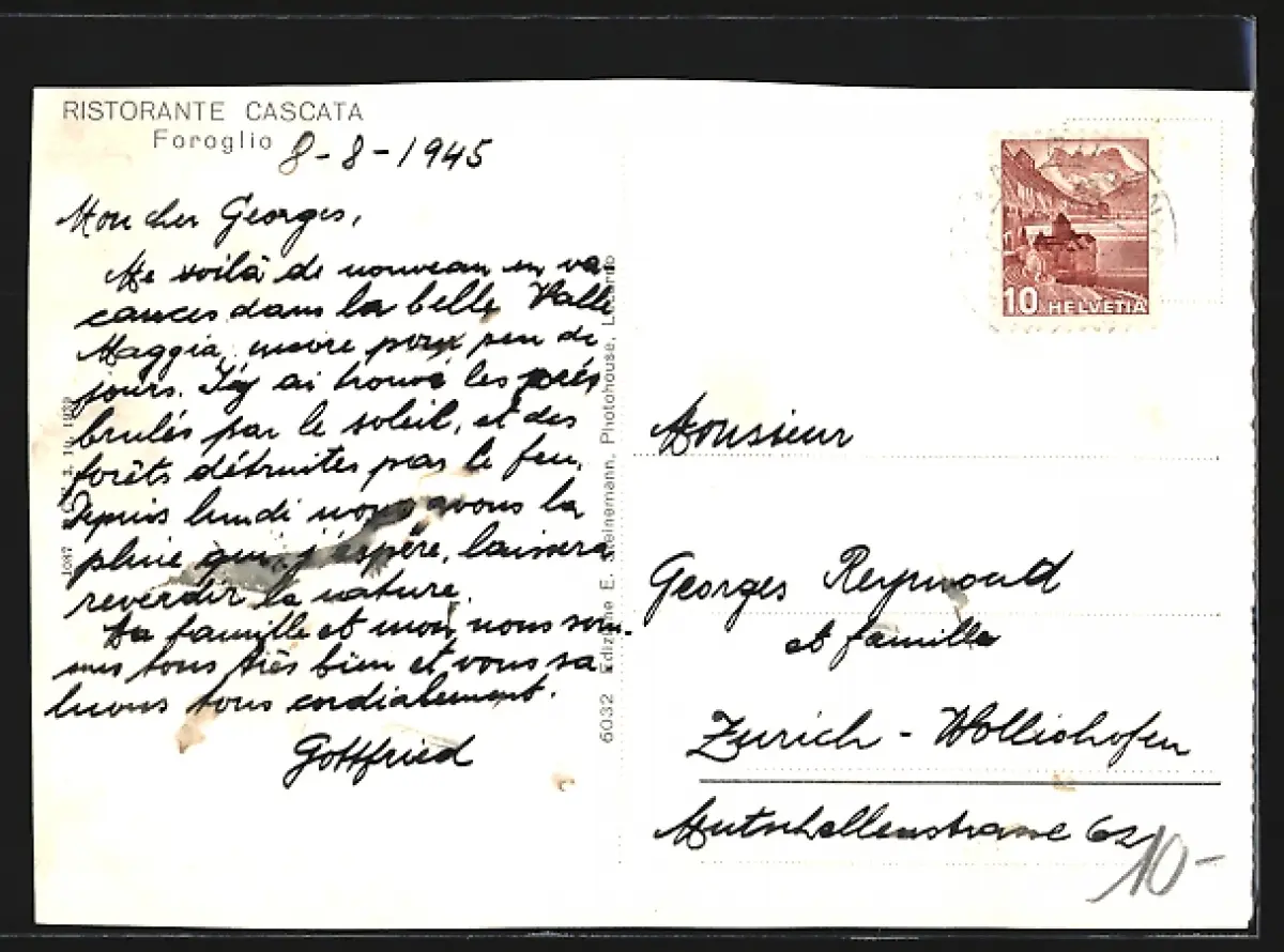 gelaufen 1945, obere Kante beschnitten
