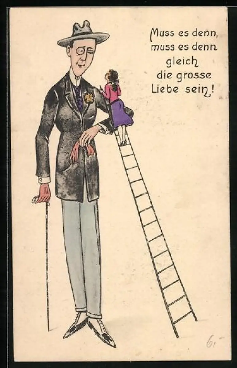 AK Fräulein klettert auf Leiter an Mann hoch, Scherz