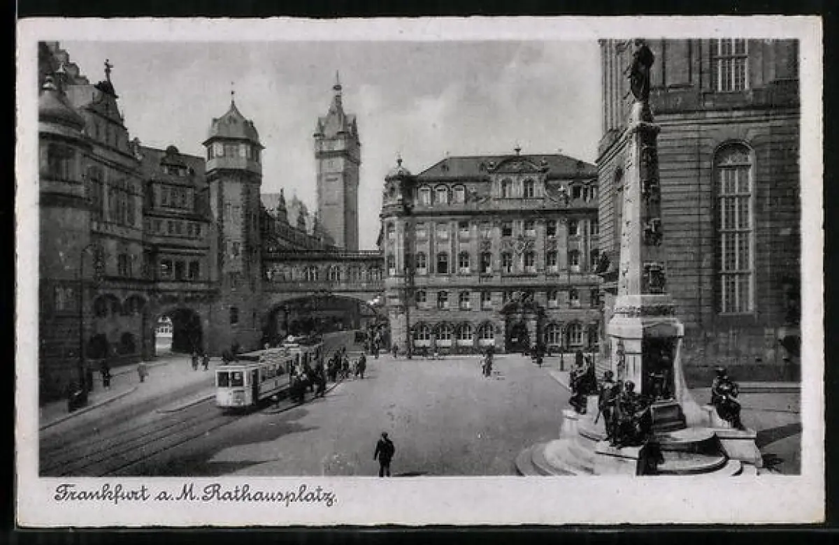 AK Frankfurt /Main, Strassenbahn auf dem Rathausplatz