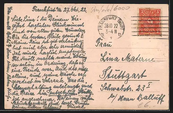 alte Ansichtskarte, gelaufen 1922, Stempelspur, guter Zustand