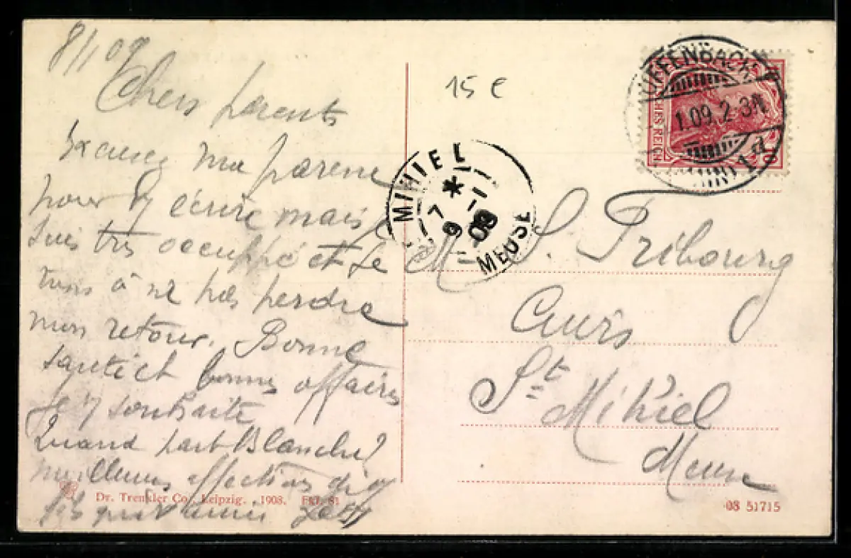 alte Ansichtskarte, gelaufen 1909, guter Zustand