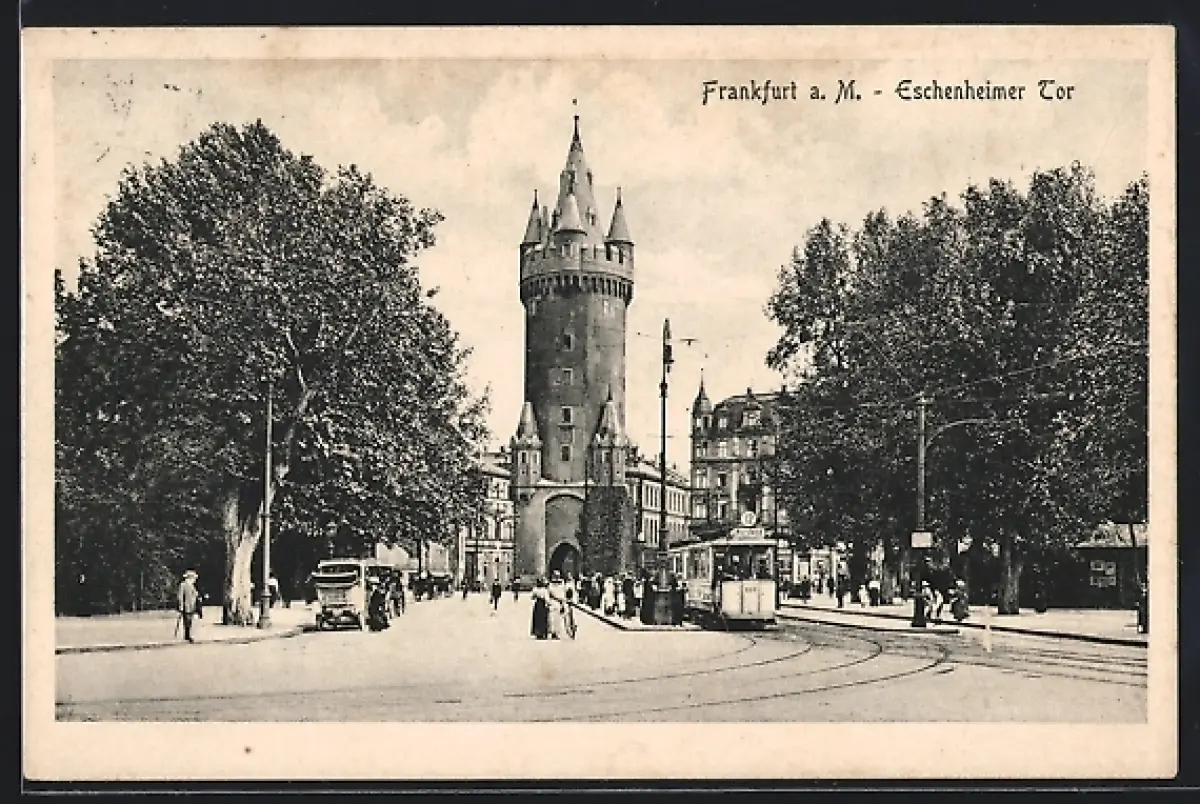 AK Frankfurt a. M., Eschenheimer Tor mit Strassenbahn