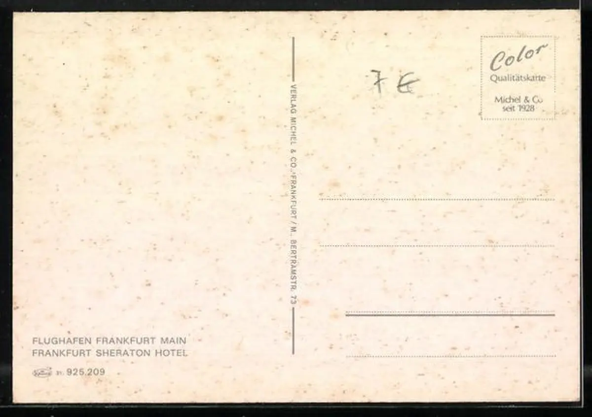 Personenbezogene Daten auf der Rückseite der Karte wurden durch blauen Textmarker unkenntlich gemacht. Die blauen Stellen sind auf die Vorderseite durchgeweicht und wirken sich negativ auf das Postkartenfoto aus