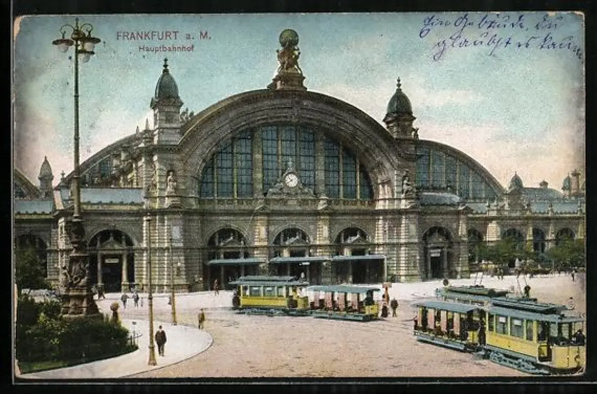 AK Frankfurt a. M., Hauptbahnhof und Strassenbahn