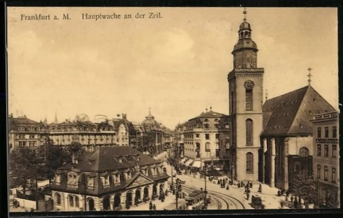 AK Frankfurt a. M., Hauptwache an der Zeil mit Kirche