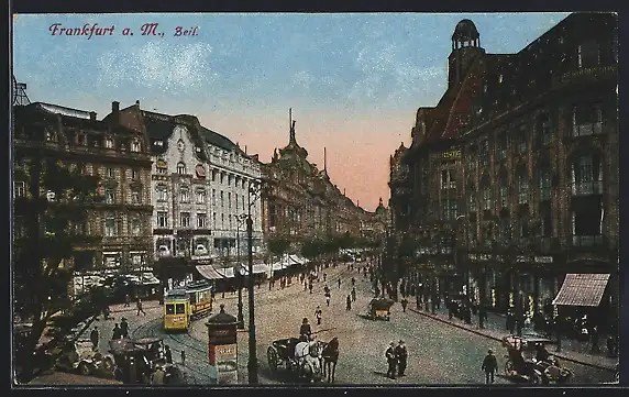 AK Frankfurt a. M., Zeil, Strassenbahn aus der Vogelschau