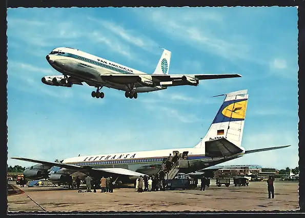 AK Frankfurt a. Main, Flughafen Rhein-Main, Passiere steigen ins Flugzeug ein