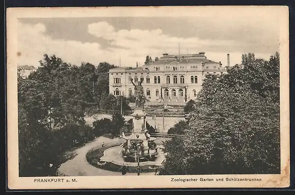AK Frankfurt a.M., Zoologischer Garten und Schützenbrunnen