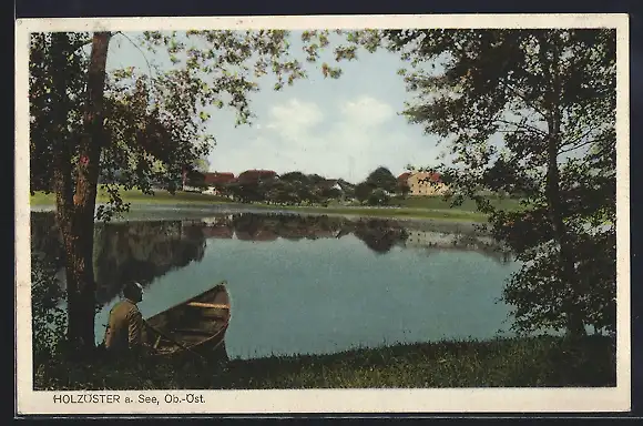 AK Franking /O.-Oe., Holzöster am See, Partie am See mit Ruderboot