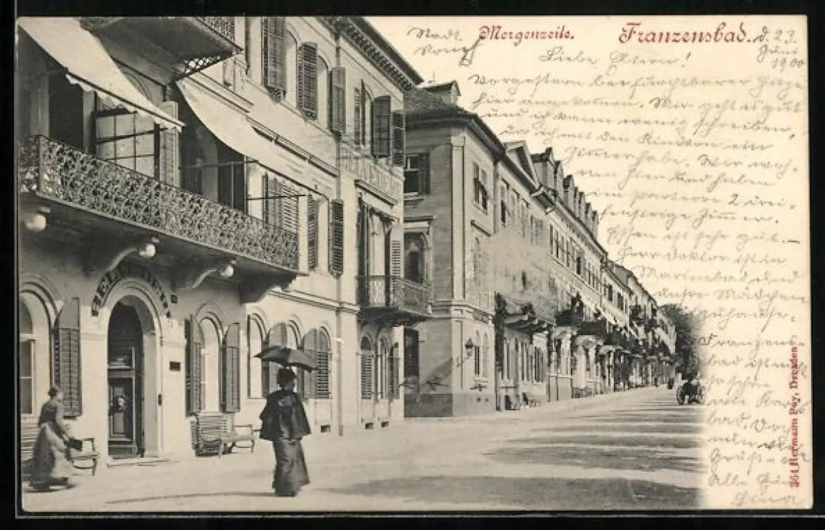 AK Franzensbad, Morgenzeile, Strassenpartie