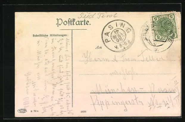 gelaufen 1907, rückseitig Oberflächenschaden, guter Zustand