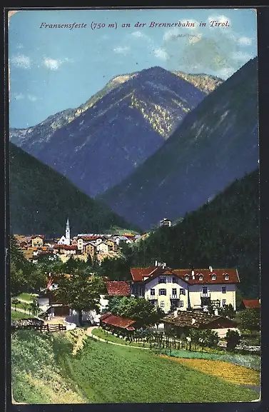 AK Franzensfeste an der Brennerbahn, Totalansicht mit Bergen
