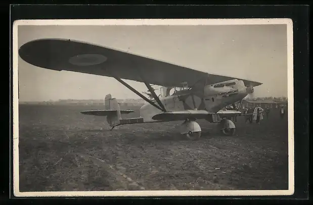 AK Französisches Doppeldecker-Flugzeug vor dem Start