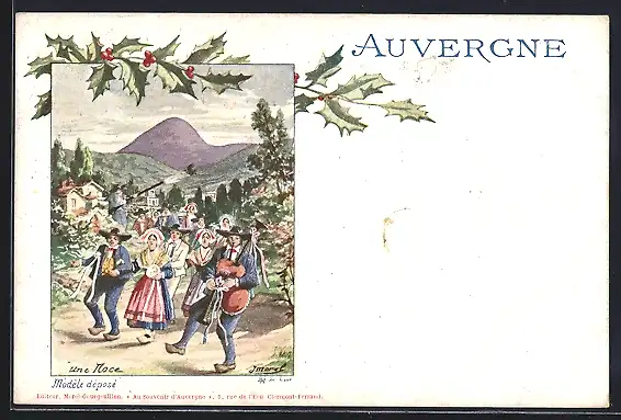 AK Franzosen in Trachten mit Dudelsack, Mistelzweig