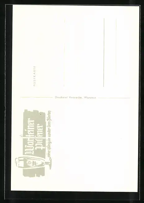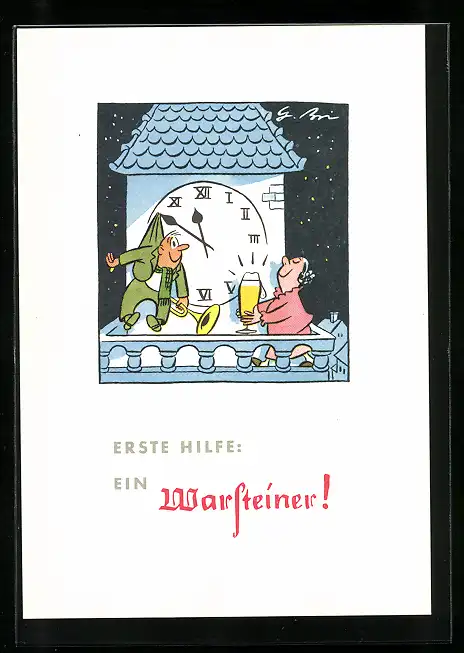 AK Frau bringt Trompeter an der Turmuhr nachts ein Warsteiner, Brauerei-Werbung