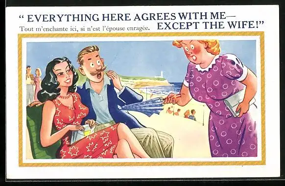 AK Frau erwischt Mann beim Flirten, frauenfeindlicher Humor