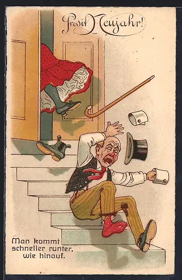 AK Frau wirft ihren Ehemann hinaus, frauenfeindlicher Humor