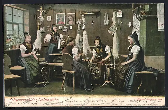AK Frauen in Schwarzwälder Spinnstube in Volkstracht