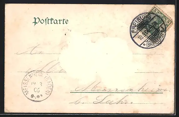 alte Ansichtskarte, gelaufen 1906, Eckknick unten re., Bugspur unten Mitte, guter Zustand