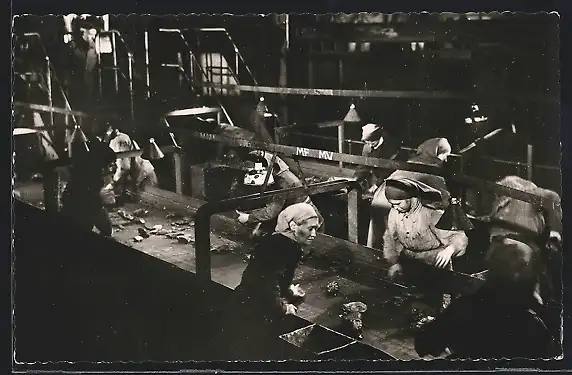 AK Frauen sortieren die Kohlen an Fliessbändern aus