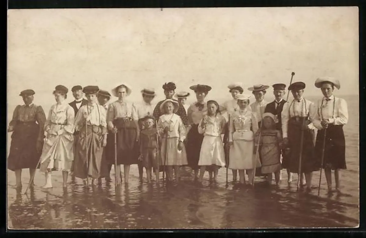 AK Frauen und Kinder in Badekleidung stehen im flachem Wasser