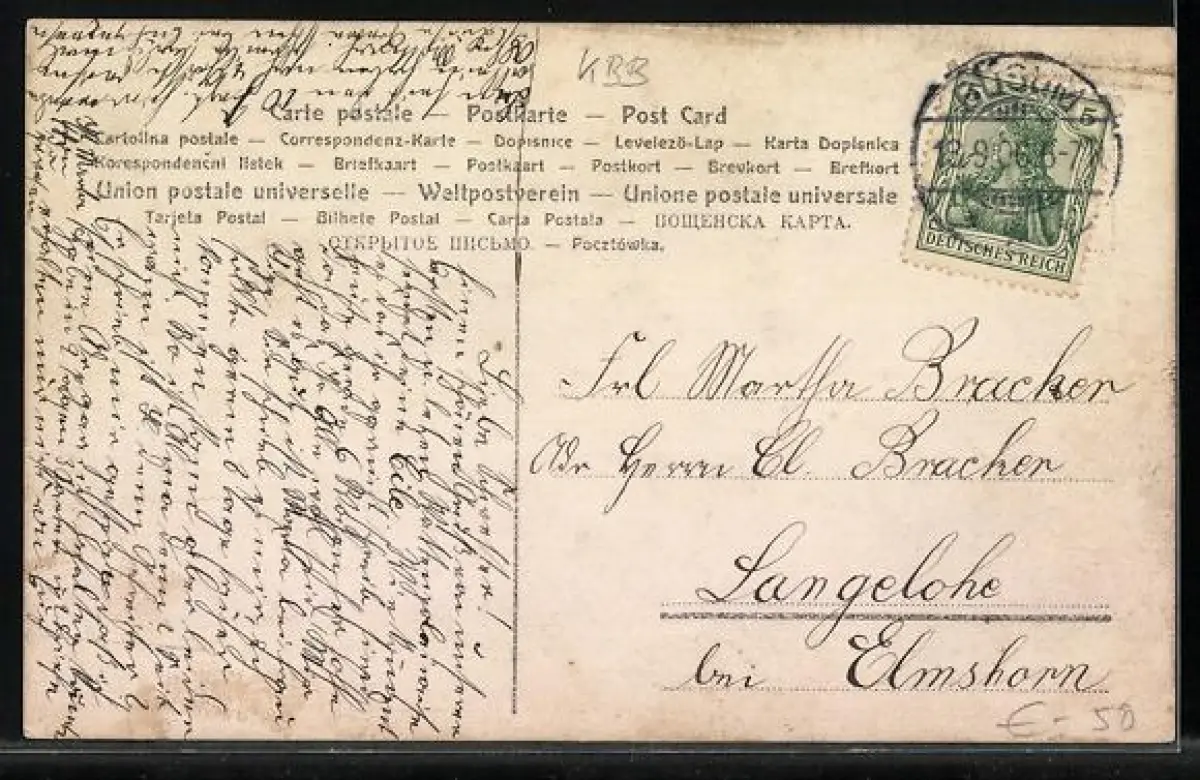 alte Ansichtskarte, gelaufen 1906, Stempelspur, guter Zustand