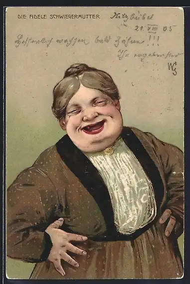 AK Frauenfeindlicher Humor, korpulente Frau heftig lachend