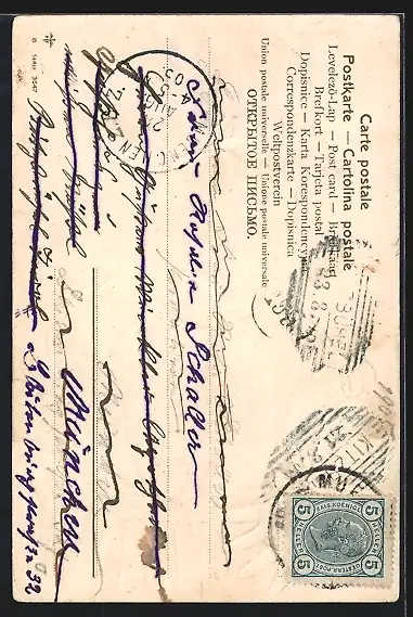 alte Ansichtskarte, gelaufen 1905, Einriss re. unten, Stempelspur, guter Zustand