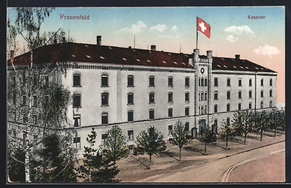 AK Frauenfeld, Kaserne mit Strassenpartie