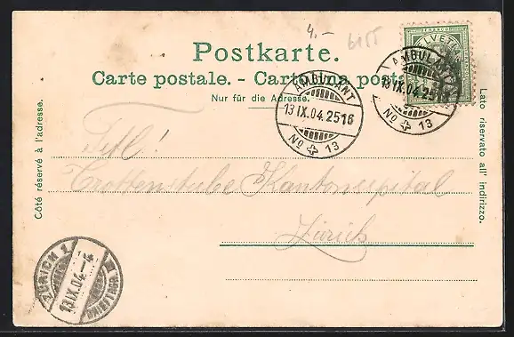 alte Ansichtskarte, gelaufen 1904, guter Zustand