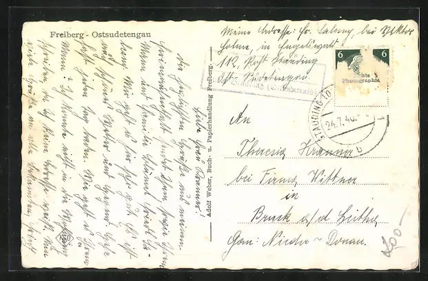 alte Ansichtskarte, gelaufen 1940, Briefmarke tlw. entfernt, guter Zustand