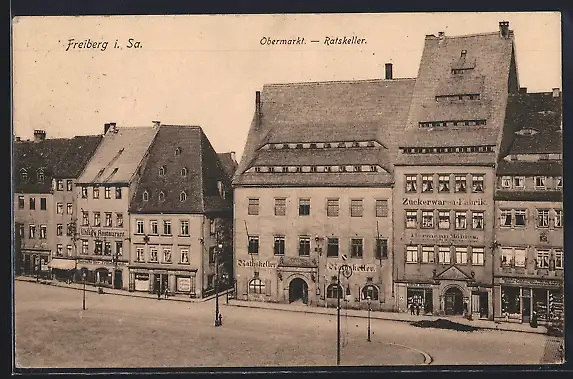 AK Freiberg i. Sa., Obermarkt mit Gasthaus Ratskeller