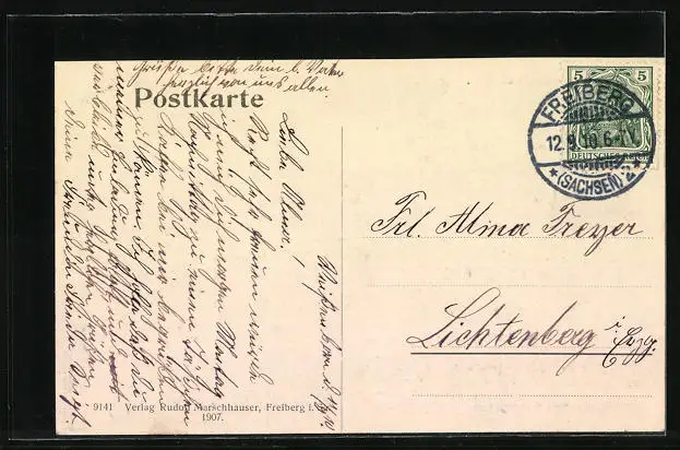 alte Ansichtskarte, gelaufen 1910, Stempelspur, guter Zustand