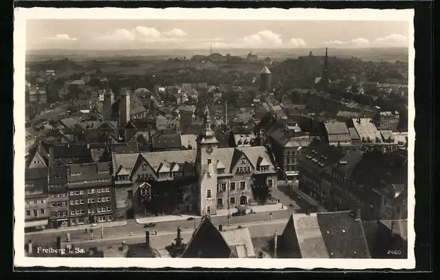 AK Freiberg i. Sa., Strassenpartie aus der Vogelschau