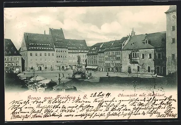 AK Freiberg i.Sa., Obermarkt mit Rathaus