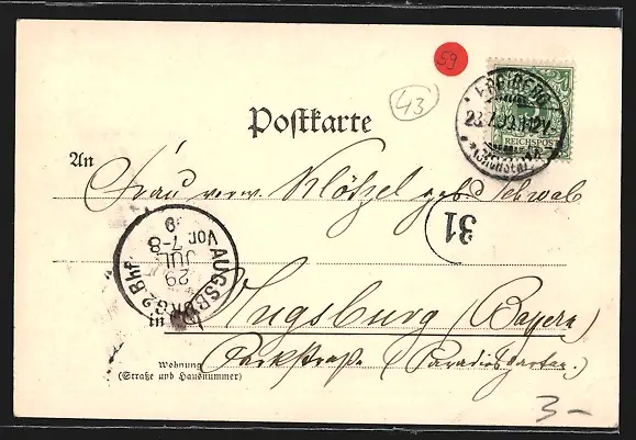 alte Ansichtskarte, gelaufen 1899, guter Zustand