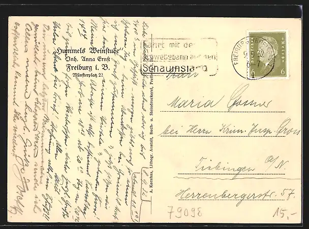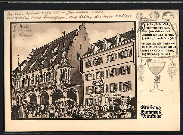 AK Freiburg i. B., Gasthaus Hummels Weinstube, Münsterplatz 22