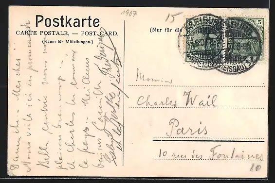 alte Ansichtskarte, gelaufen 1907, guter Zustand